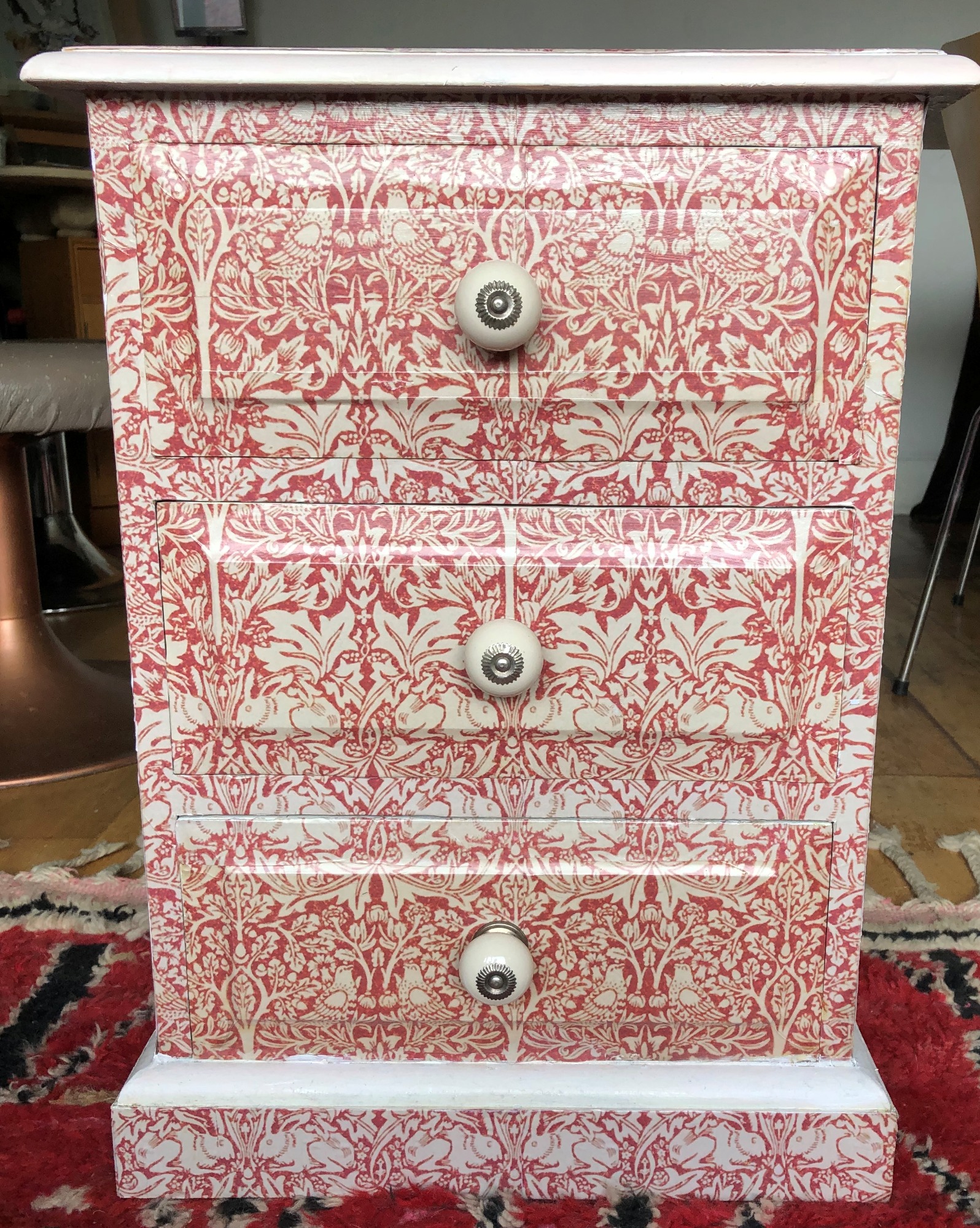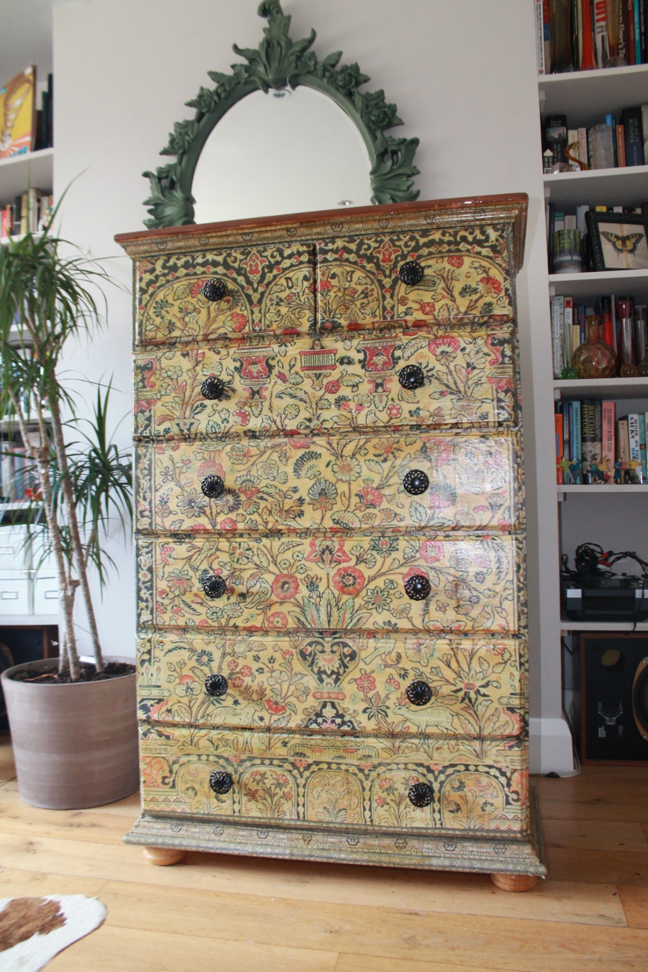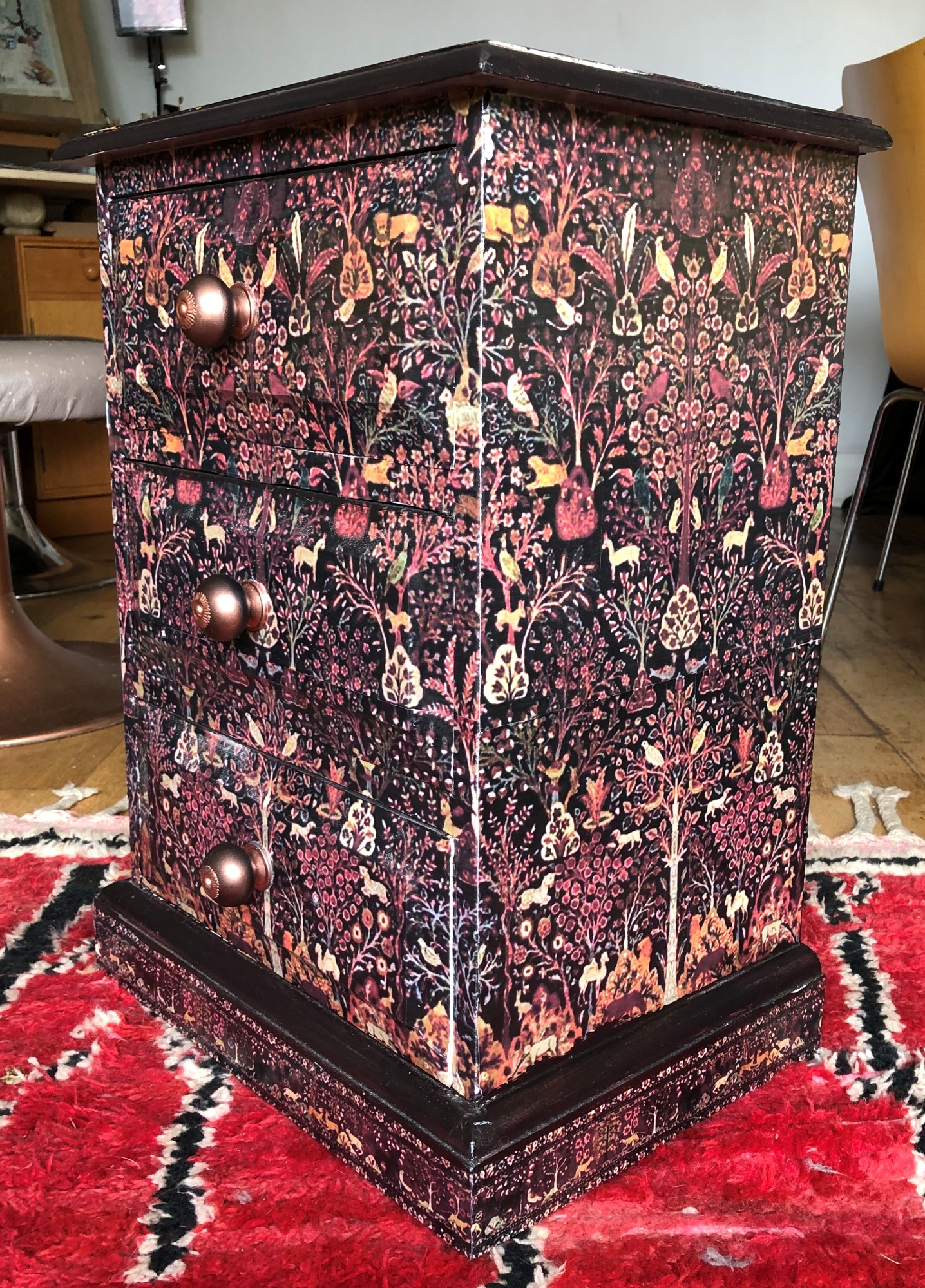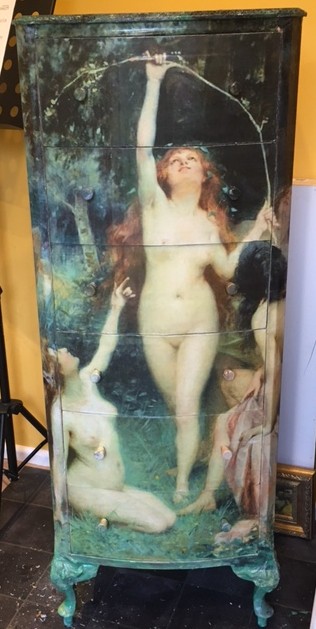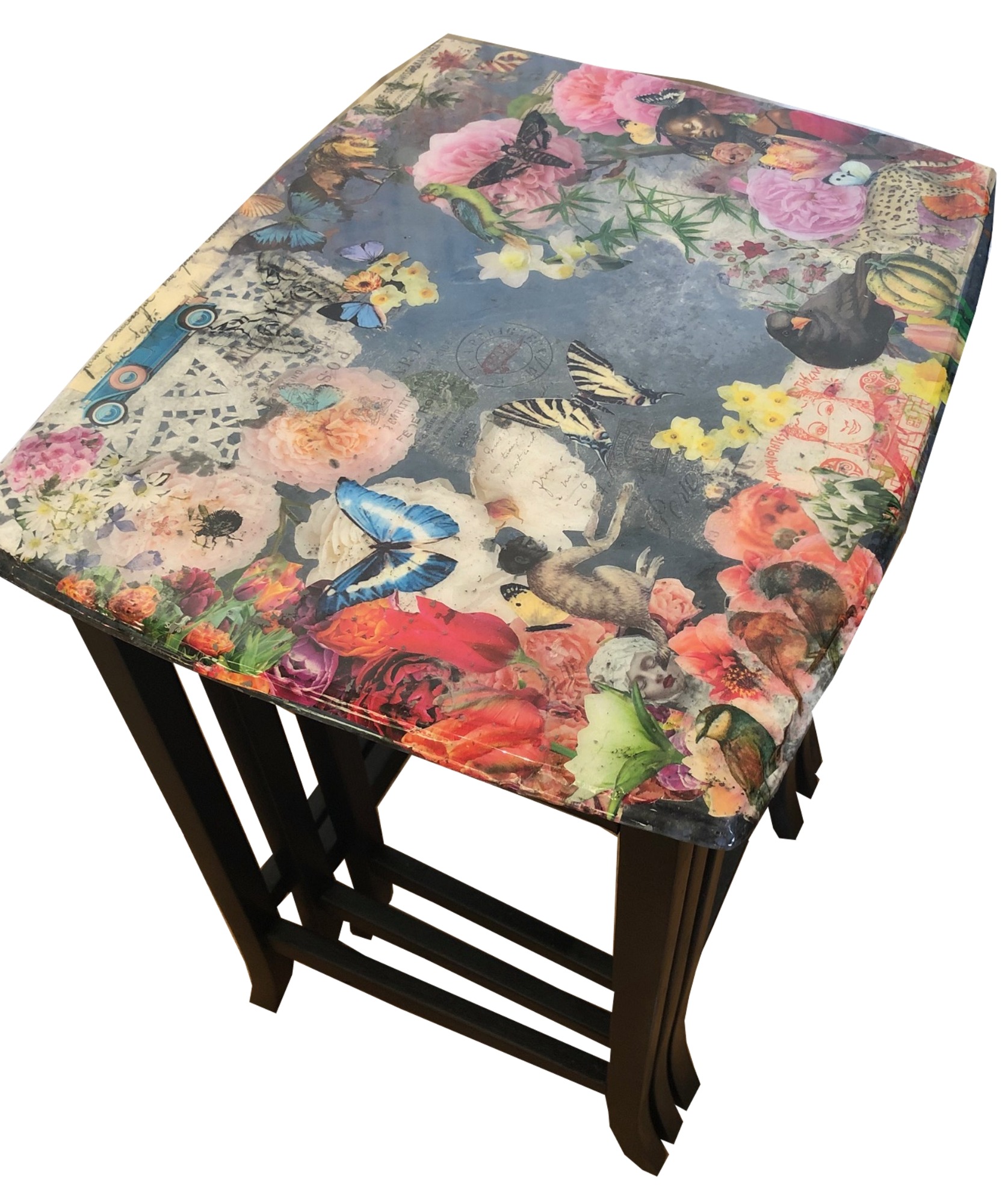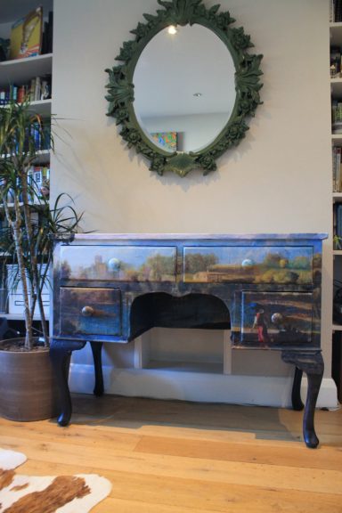 Explore a collection of larger-scale decoupage works on furniture where classical and timeless imagery is reimagined into functional art pieces. Each surface becomes a canvas, layered with cut paper and sealed for durability, blending artistry with practicality. These pieces are hardwearing yet refined, bringing new life to vintage forms and fine frames through the expressive medium of decoupage. Why not commission your own?
