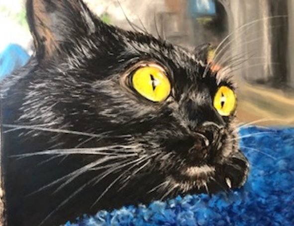 My artistic style is true to life, but not in a photographic sense. I aim to capture a moment rather than a frozen image—a breath, a spark of being. Each painting reflects the subject’s personality and spirit, something that feels honest and alive. My work honours and celebrates the family pet, portraying them with the same affection and care as the one who commissioned their likeness to be cherished for a lifetime.